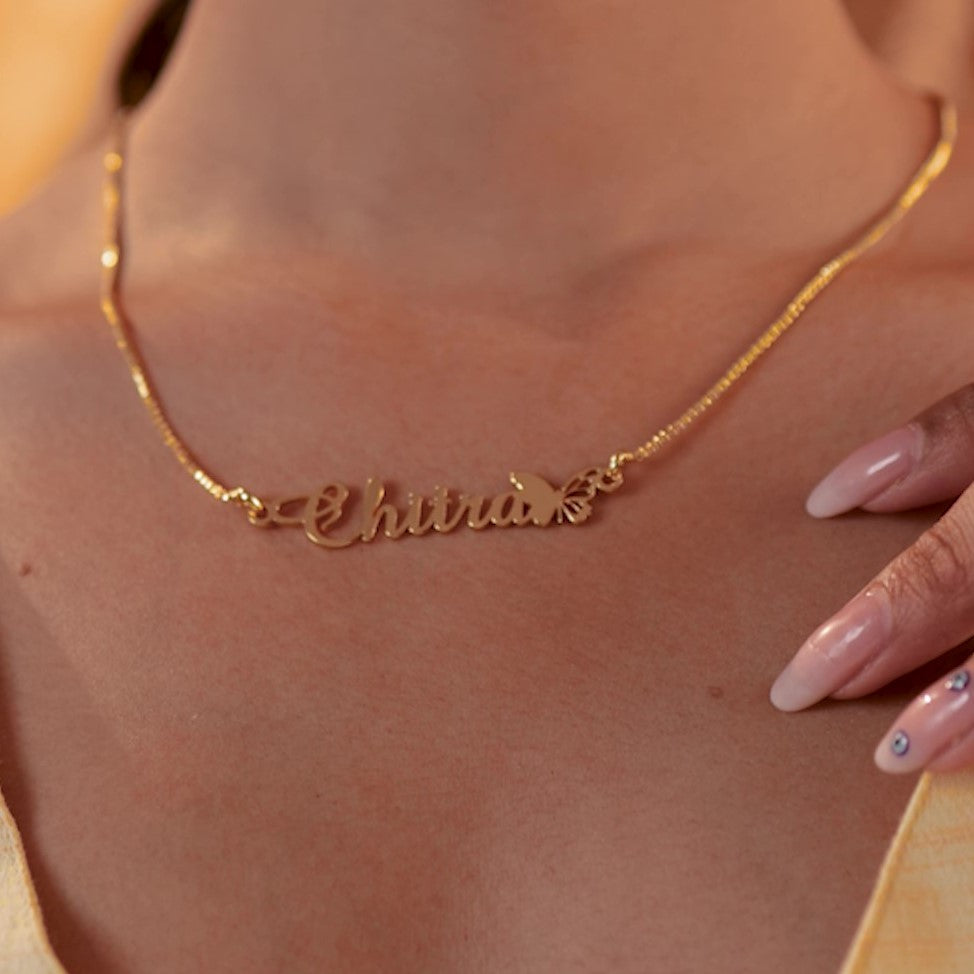 OurĀ Butterfly Name NecklaceĀ blends beauty and personalization in the most delicate way. With a dainty butterfly sitting next to your custom name, this necklace is more than just jewelry ā it's a statement of charm and grace.