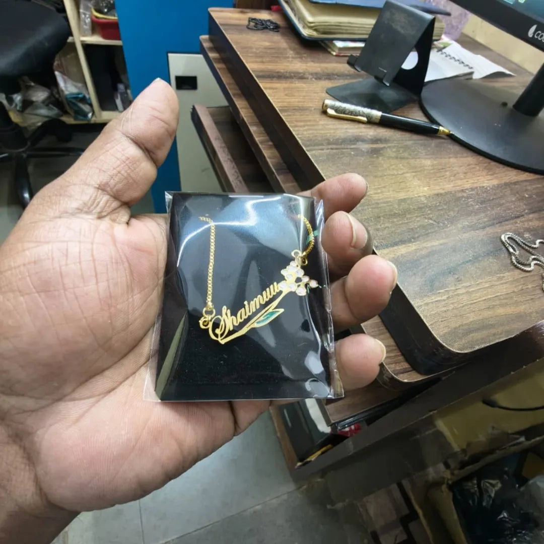 Enamel Name Necklace CNC Engraved Flower Any Colour Flower Can Be Done. 18K Gold Plated.  Gold, Silver Available.