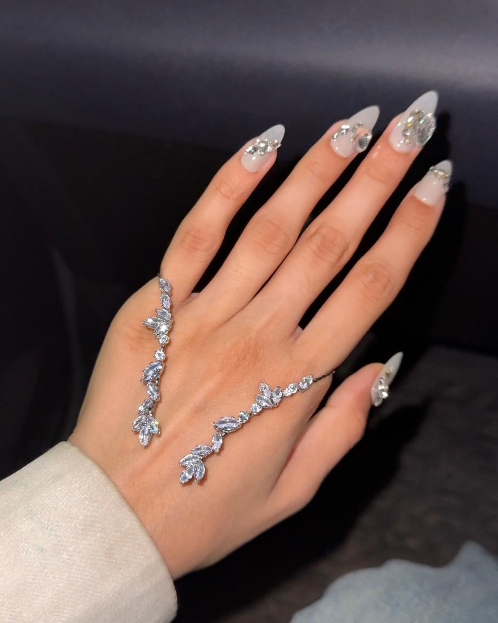 Hand jewellery, Silver jewellery, anti tarnish jewellery, party hand jewellery, Pinterest inspired jewellery, party jewellery, rhinestone hand jewellery, hand veil