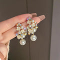 Luxury Floral Pearl Drop Earrings