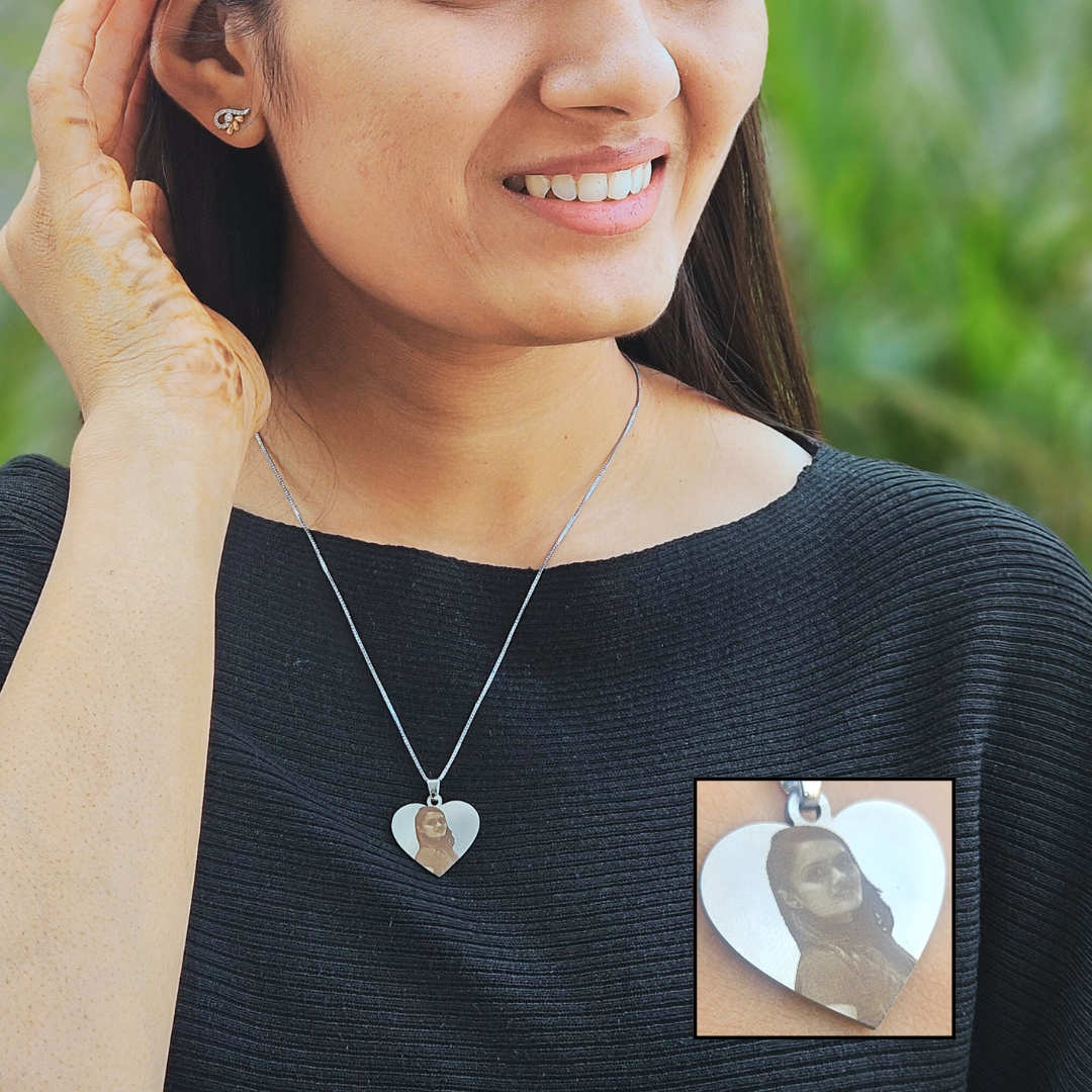 Carry your precious memories close to your heart with our Custom Heart-Shaped Photo Necklace.