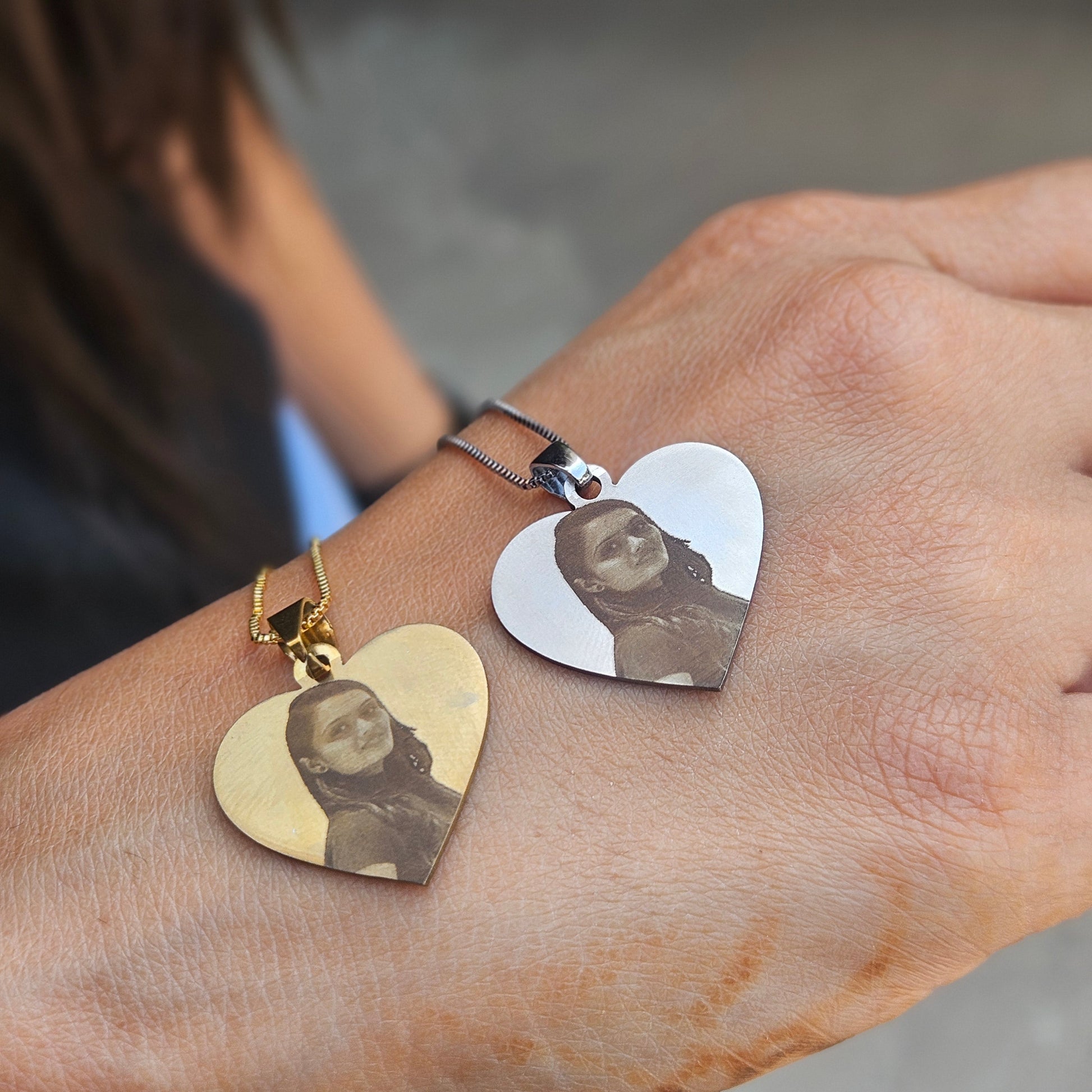 This beautifully crafted pendant features a high-quality engraving of your favorite photo, making it a perfect gift for loved ones or a sentimental keepsake for yourself. Available in elegant gold and silver finishes, this piece adds a personal touch to your jewelry collection.