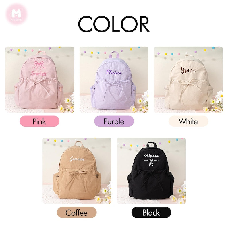 Personalized Kids Backpack with Bow: Embroidered Name Book Bag.Toddler School Bag Gift