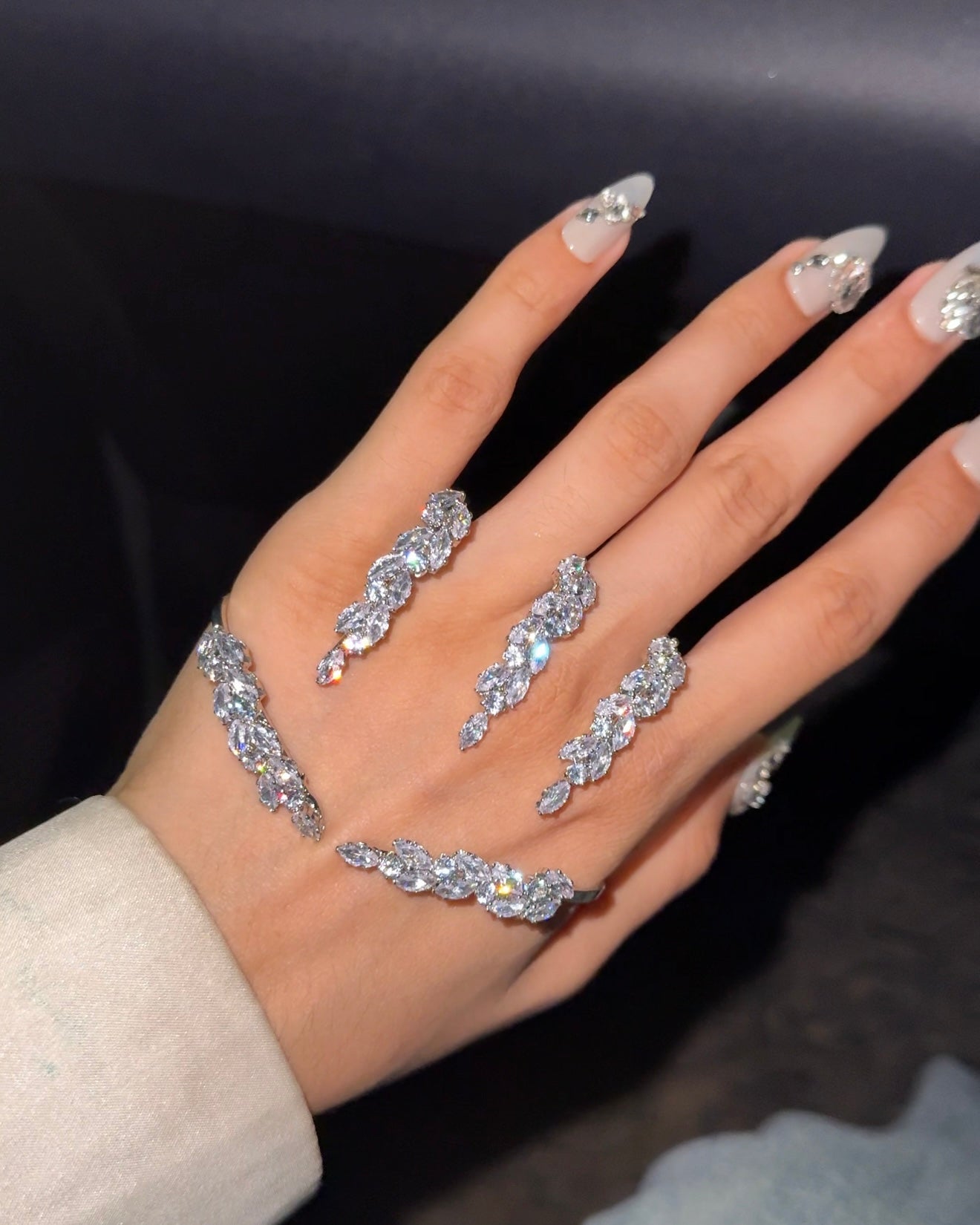 Hand jewellery, Silver jewellery, anti tarnish jewellery, party hand jewellery, Pinterest inspired jewellery, party jewellery, rhinestone hand jewellery, hand veil